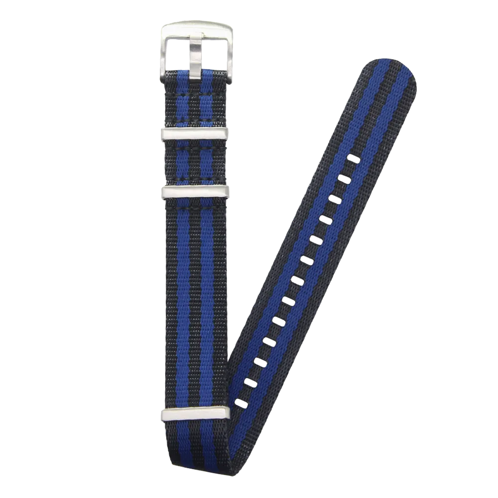 Spoke Axis em formato NATO, com linhas centrais que reforçam o design e trazem equilíbrio visual. O tecido resistente garante conforto no uso diário, enquanto a composição versátil acompanha relógios de estética clássica e esportiva.